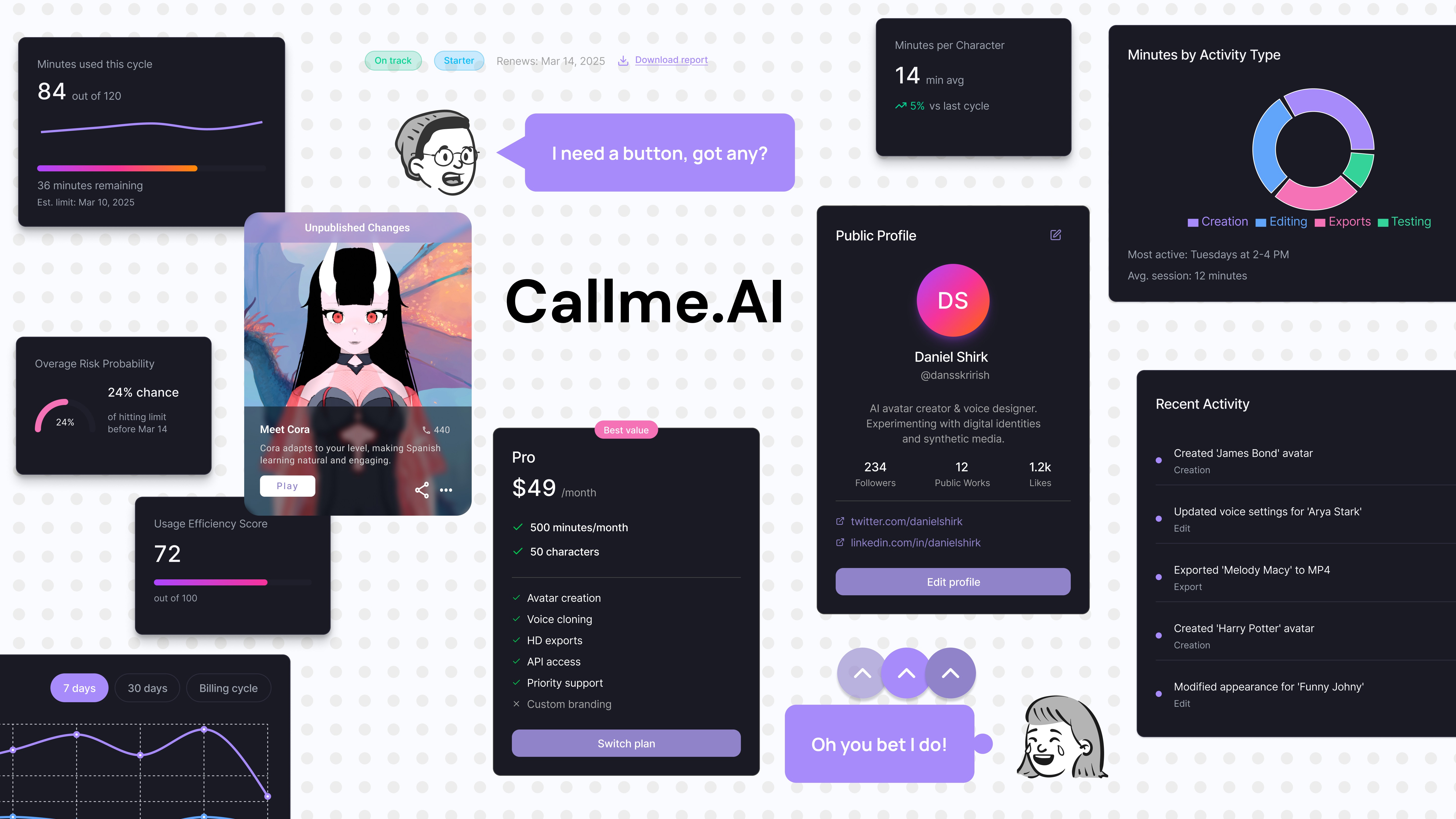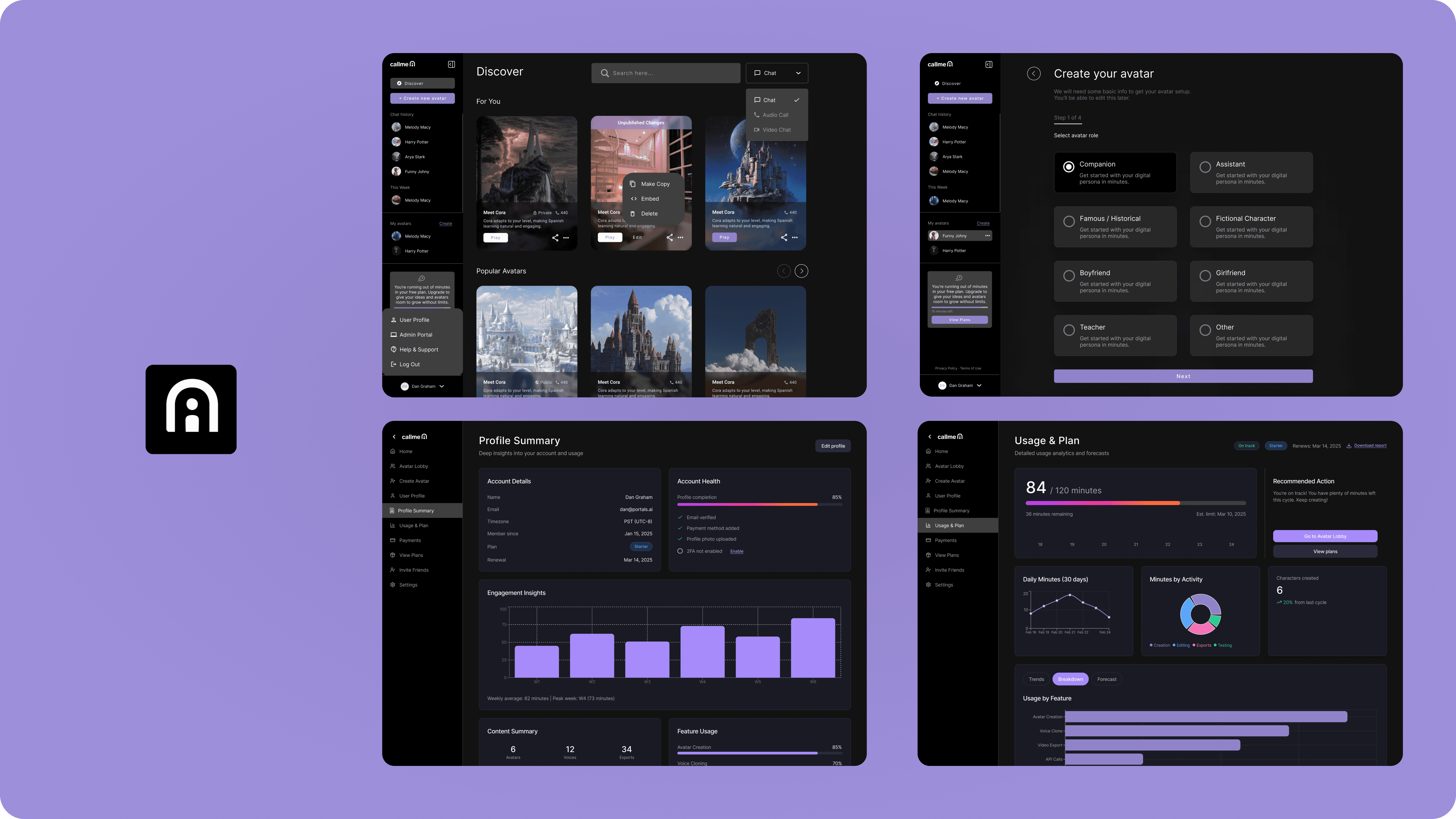 Designed an AI avatar platform enabling users to chat, call, and interact with digital personas.