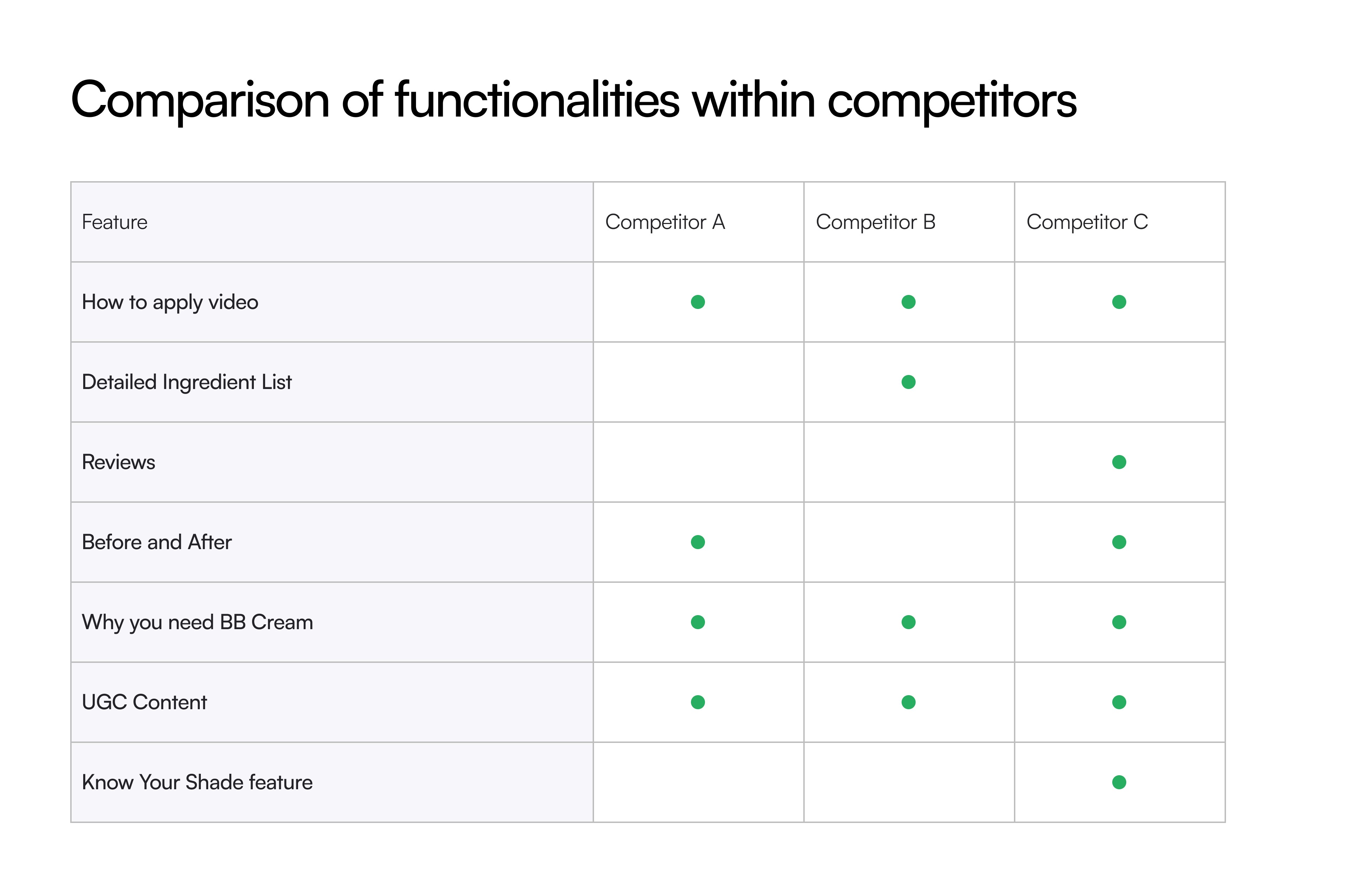 Table to compare competitors features'
