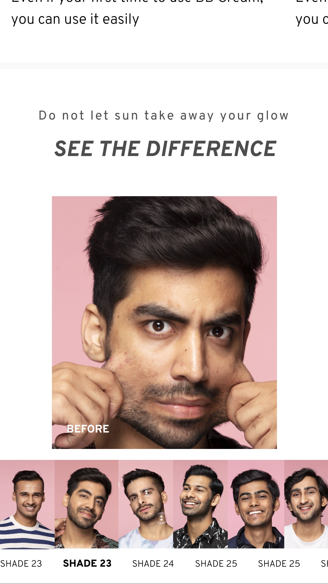 With the before and after crousel, user can see how the bb cream enhances the face
