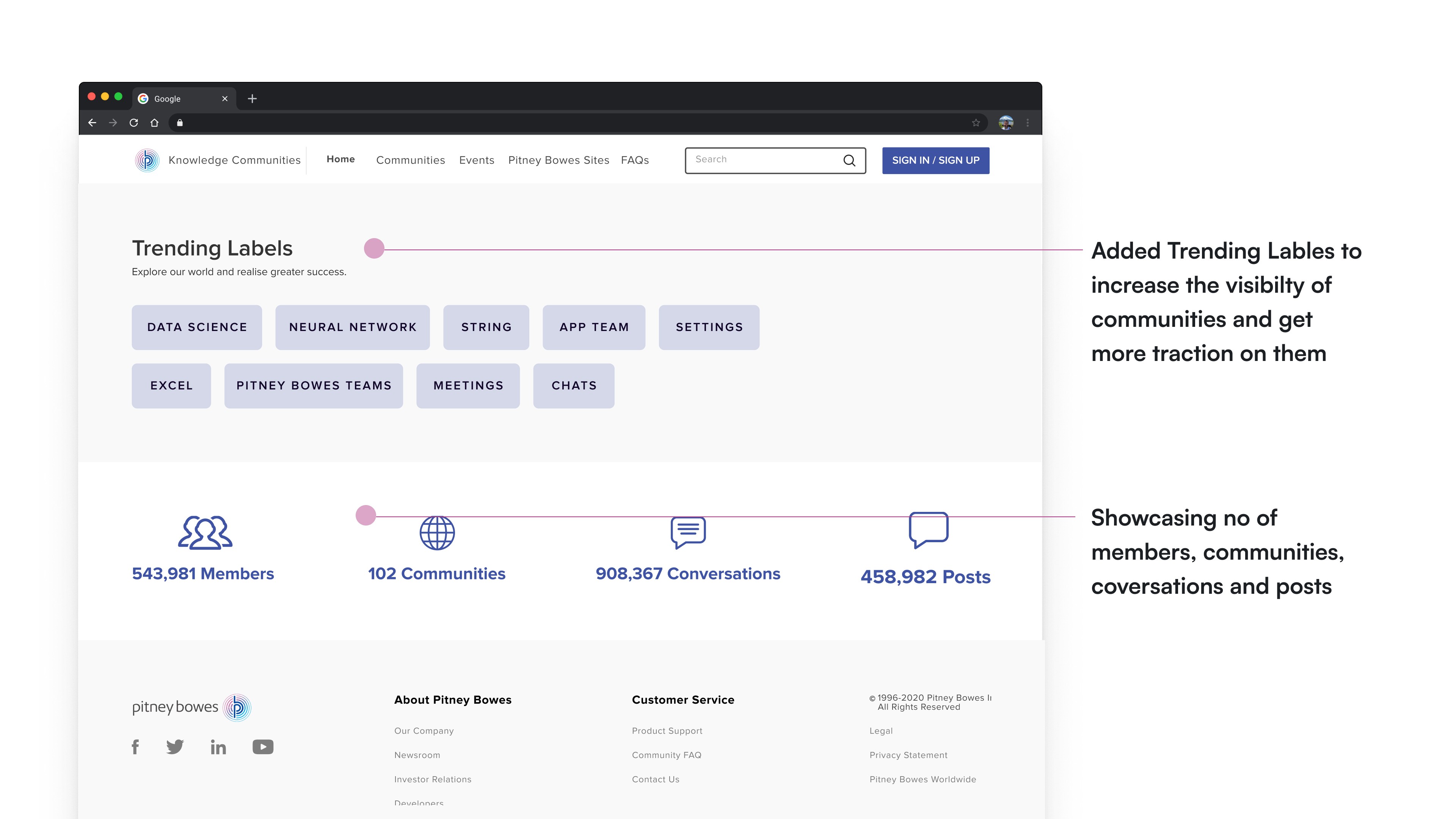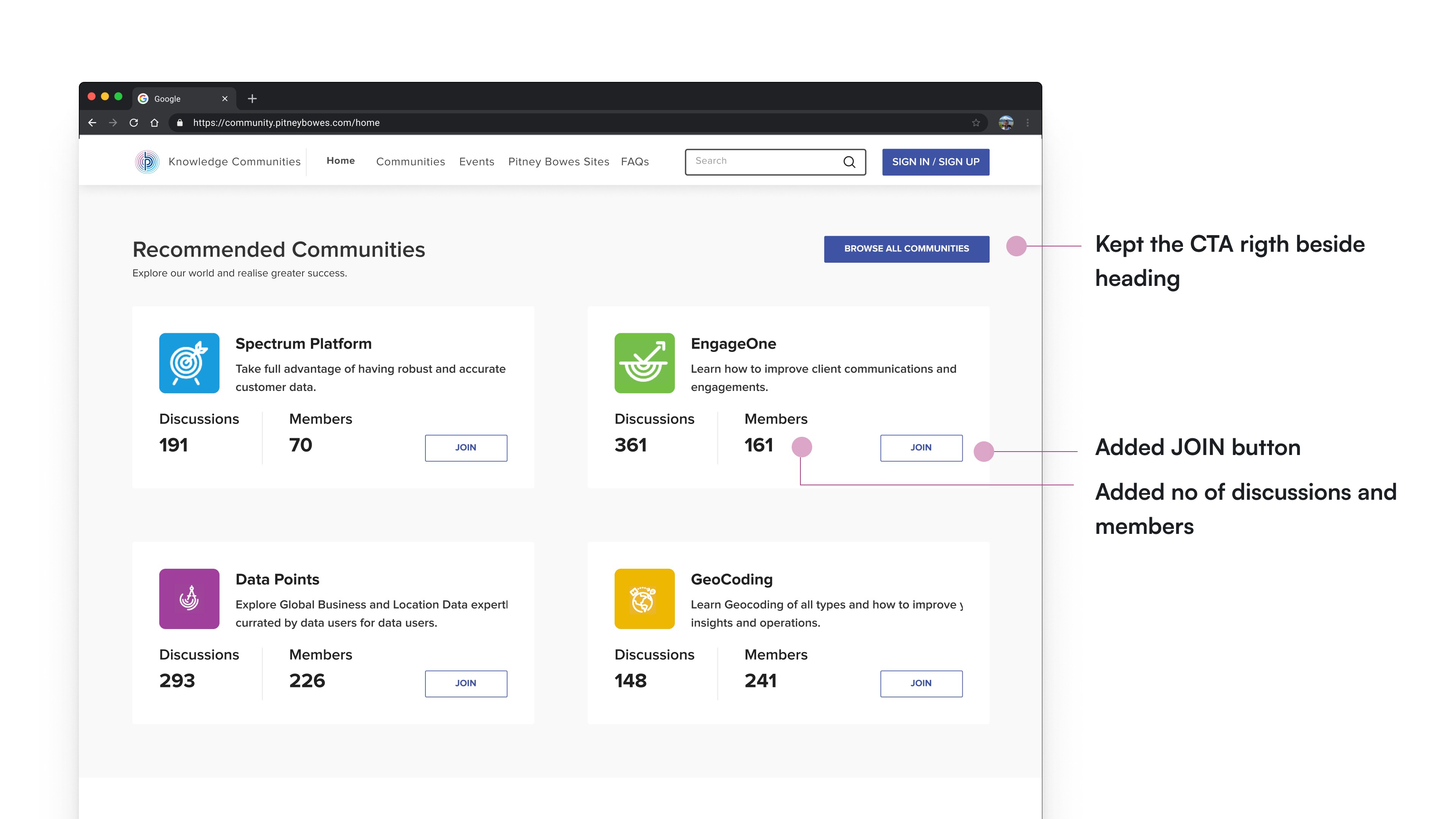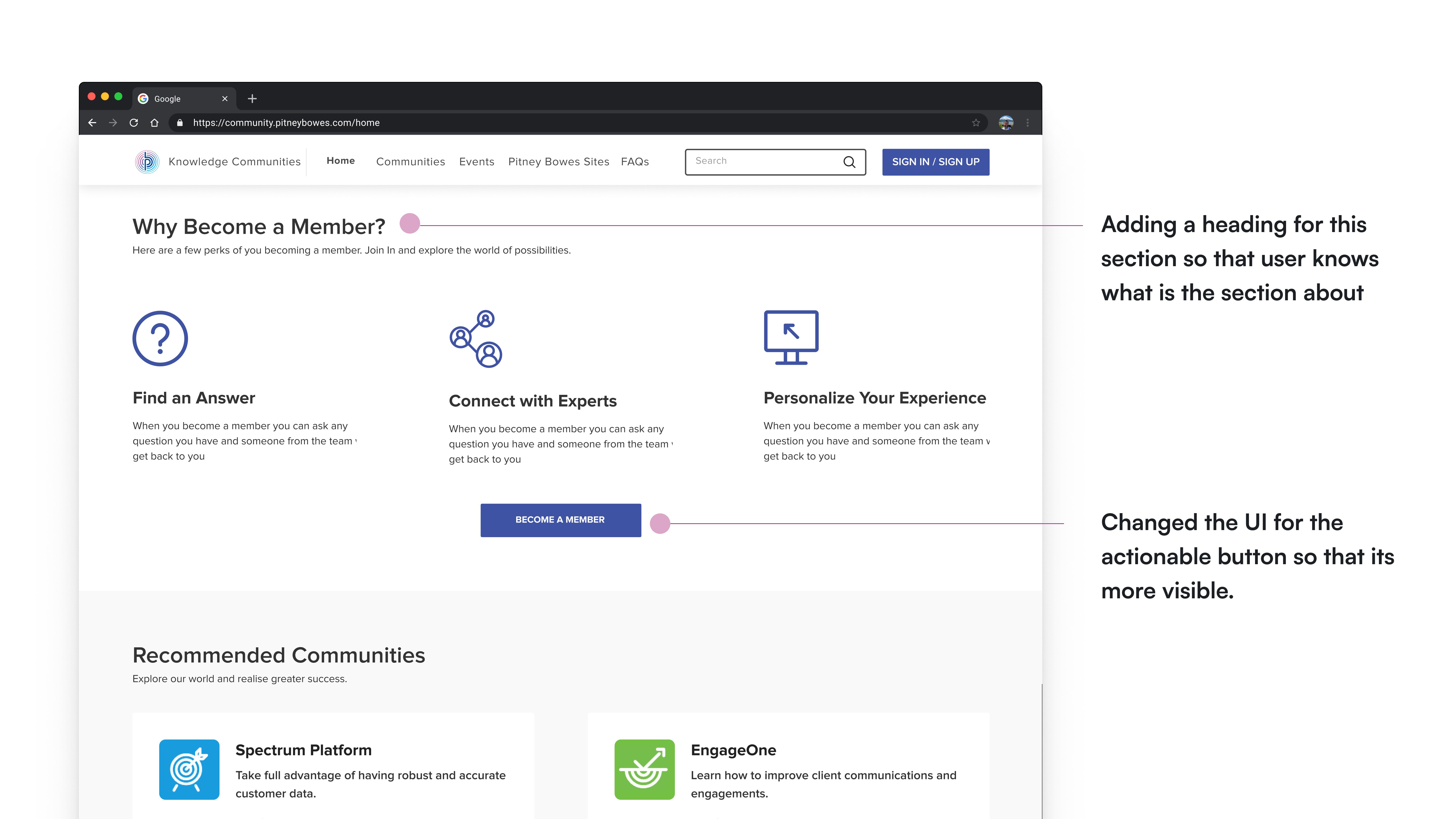 I was tasked to revamp the Knowledge Communities website for Pitney Bowes.