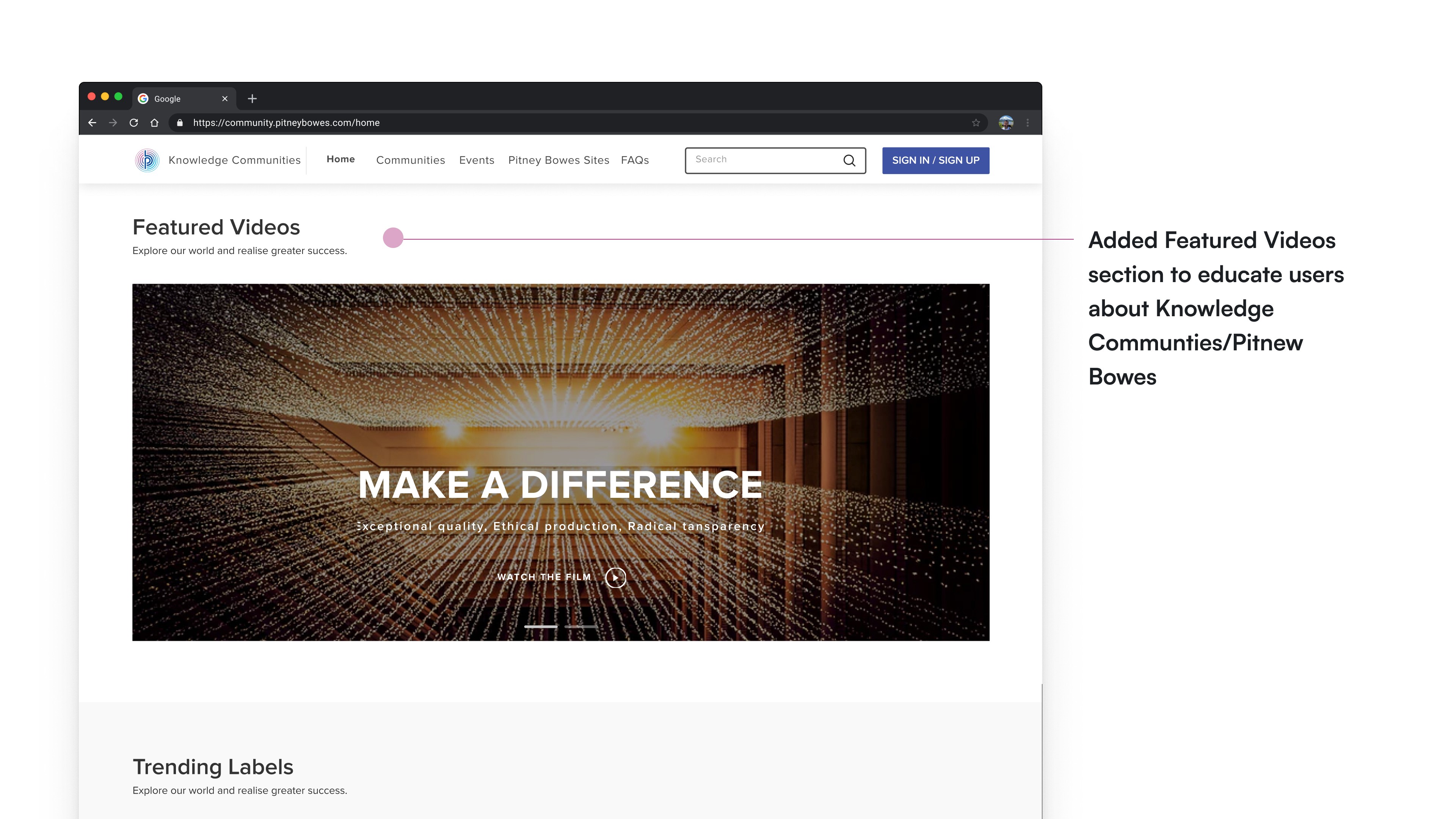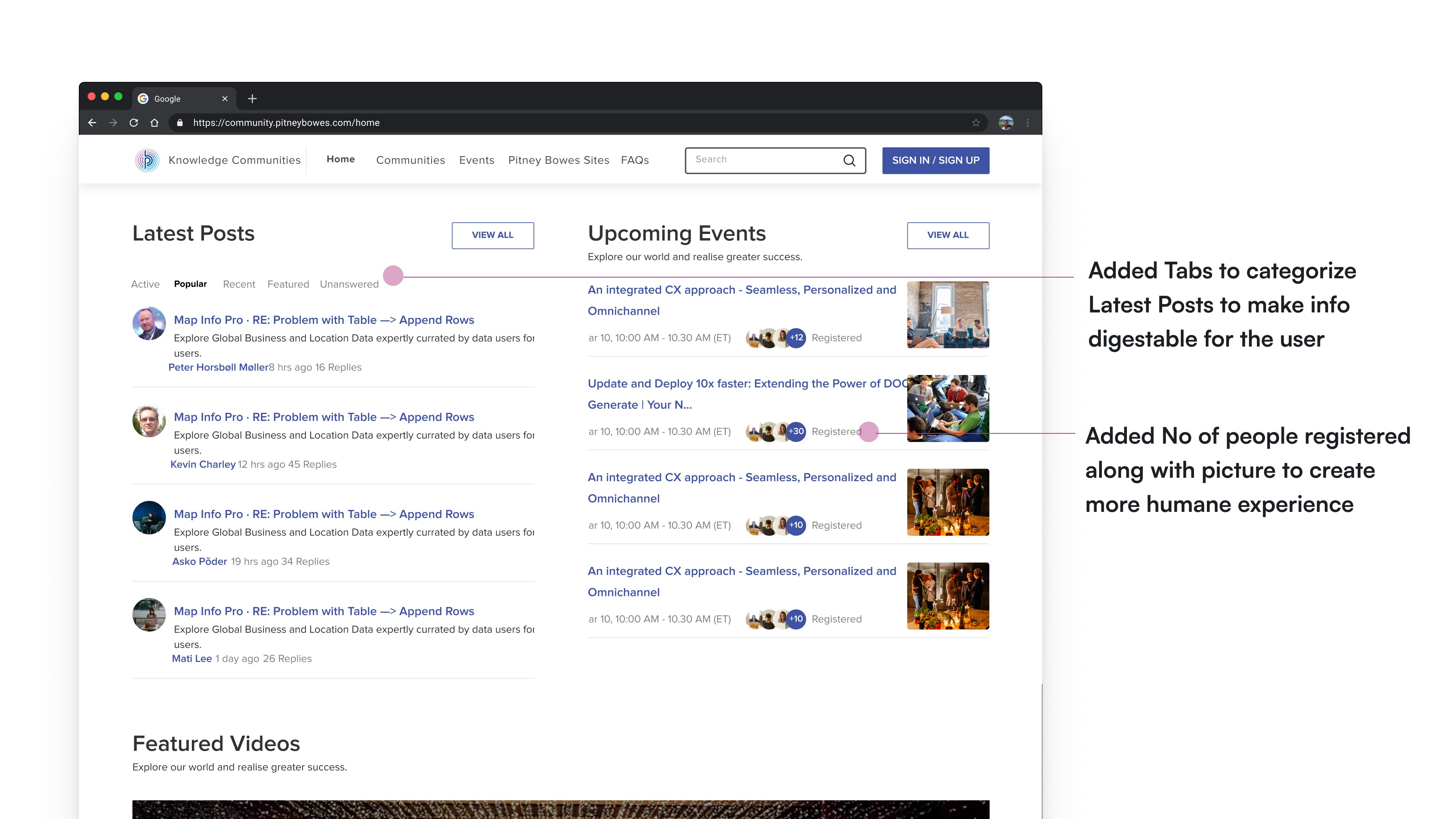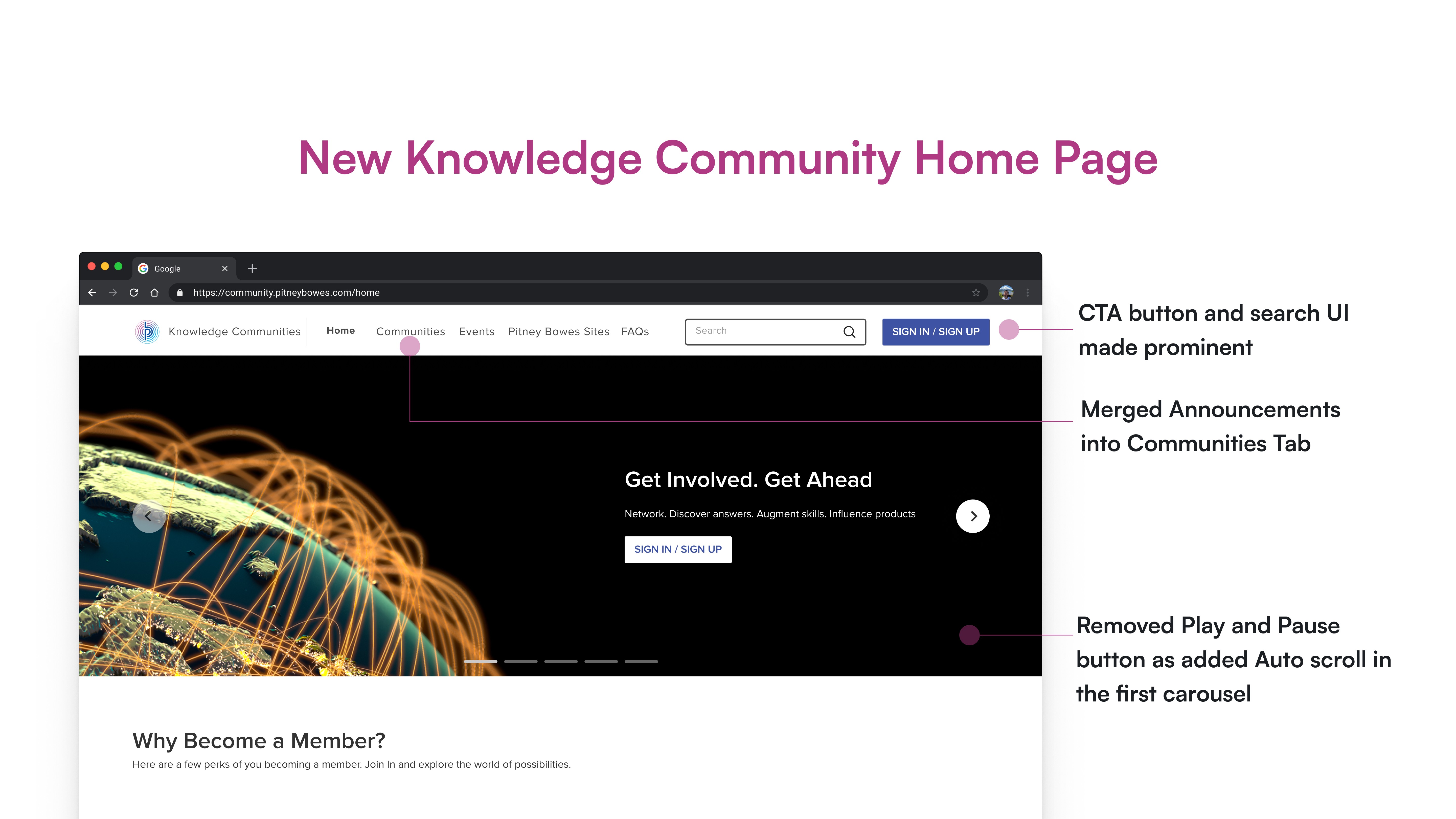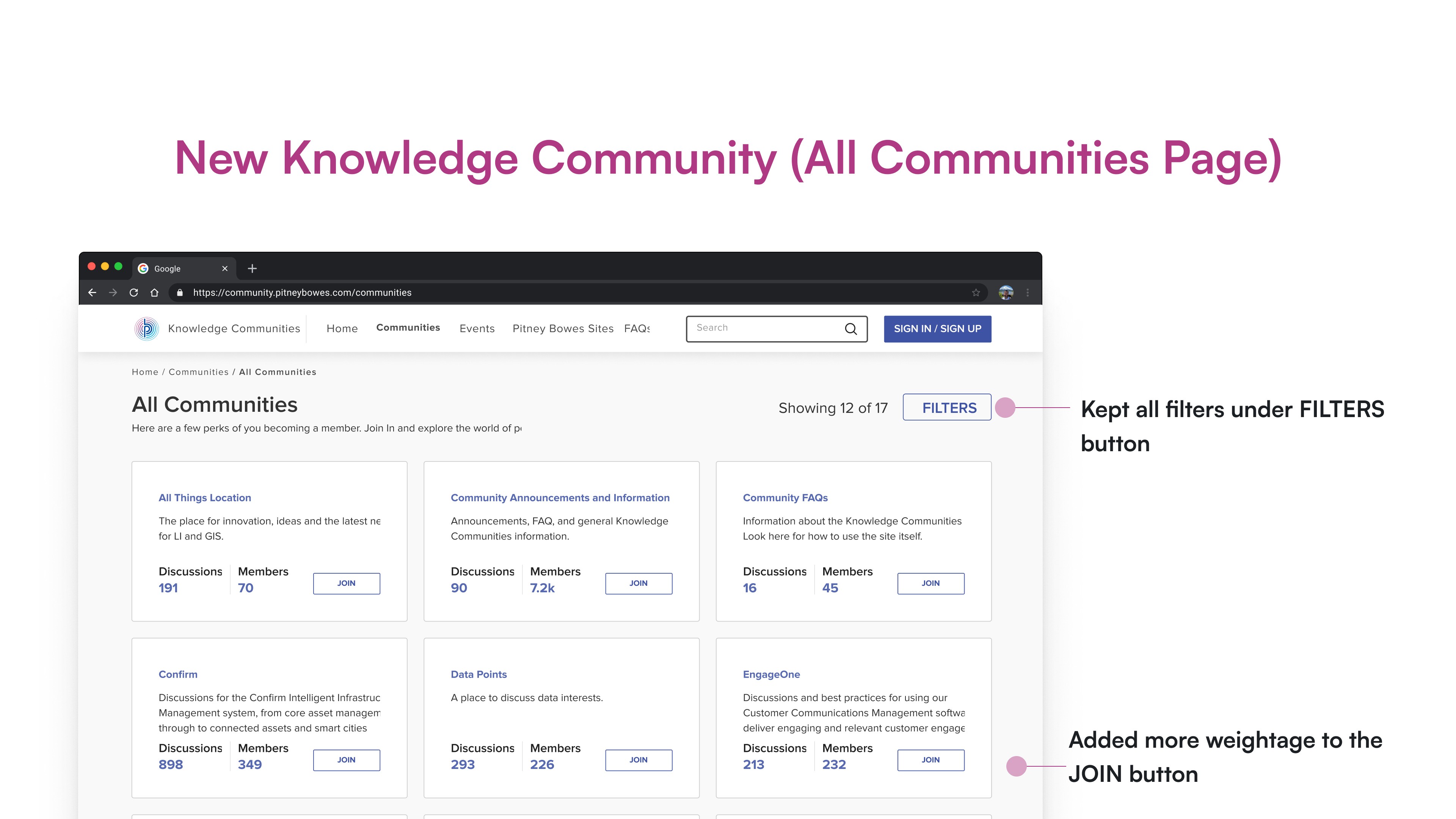 I was tasked to revamp the Knowledge Communities website for Pitney Bowes.
