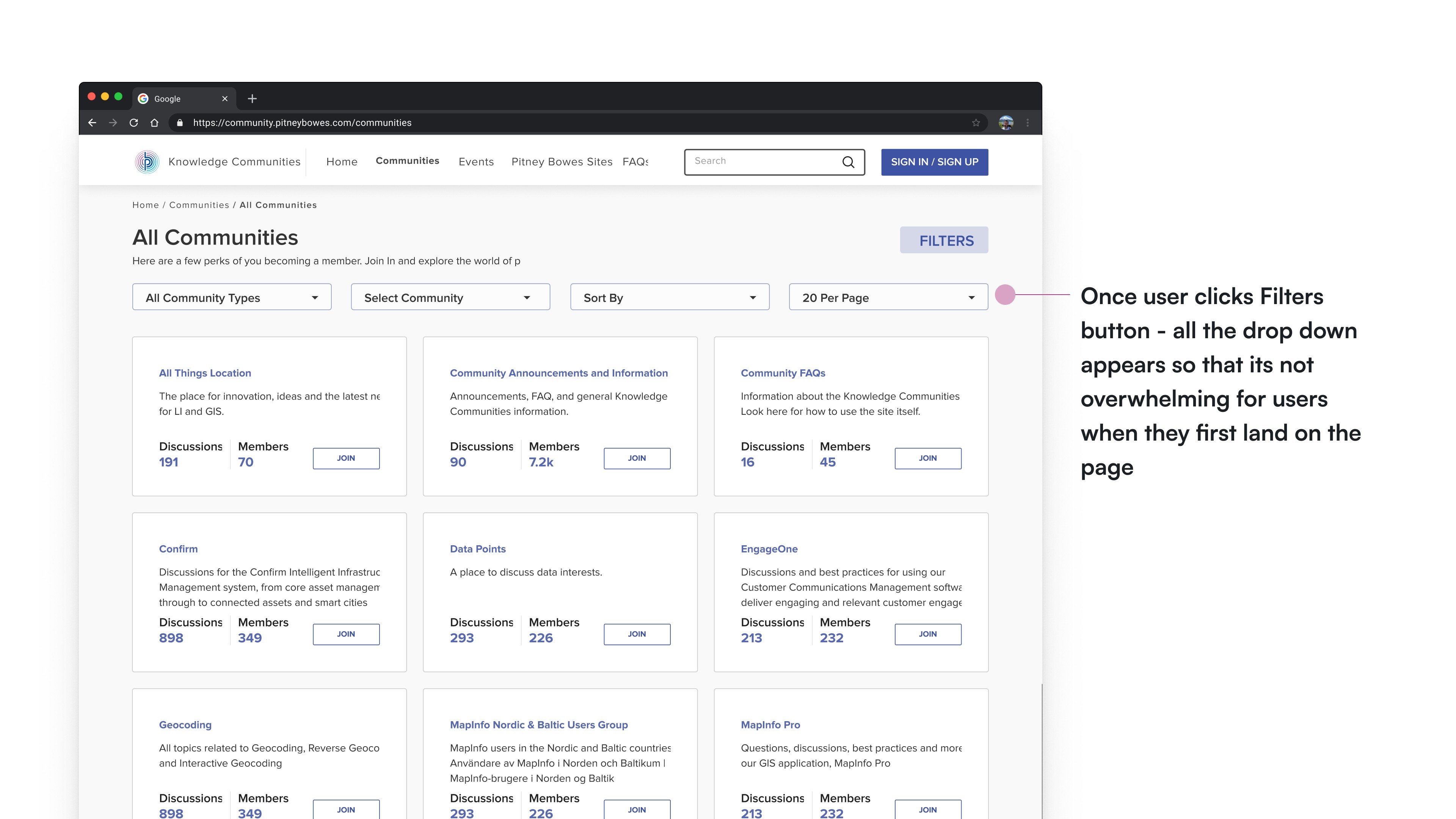 All Communities Page - after clicking Fiters