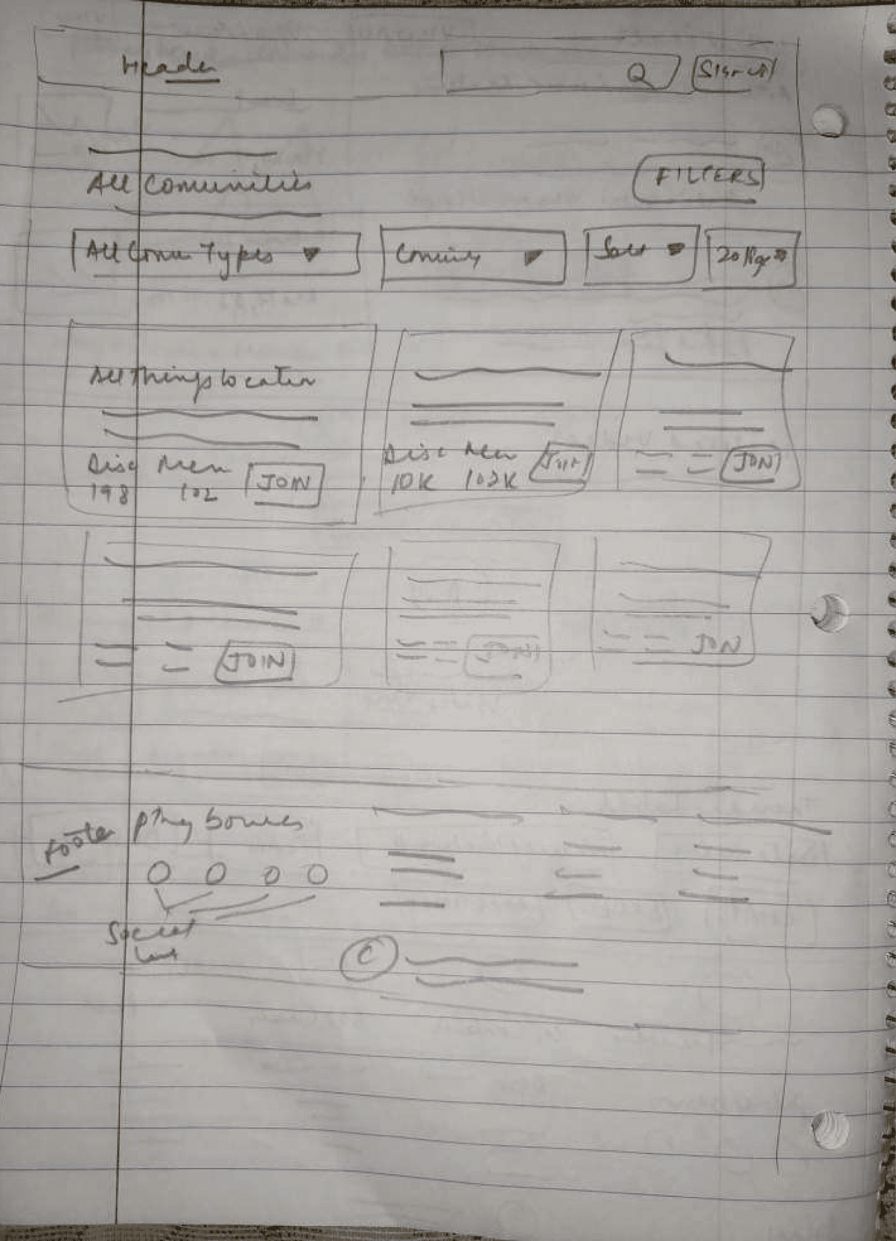 Wireframing Goals for Home Page and All Communities Page: